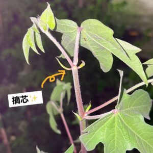 写真の通り本体も大きく成長してきているため、今回は「摘芯」を実施しました✂
