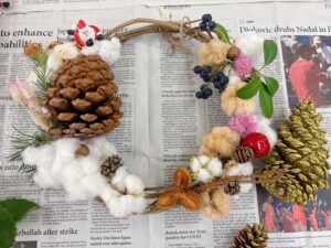 最終回の活動は、収穫した沢山のコットンを使ってのクリスマスリースを作りました😊