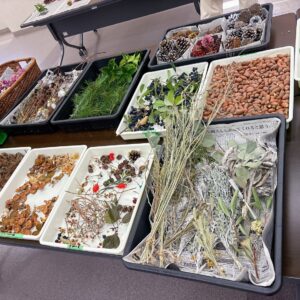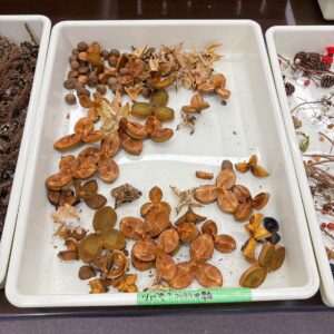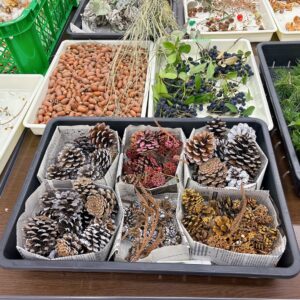 リースに使う飾りつけとして、同じく地域の公園で収穫したり拾った自然の素材の数々↓↓